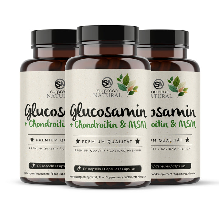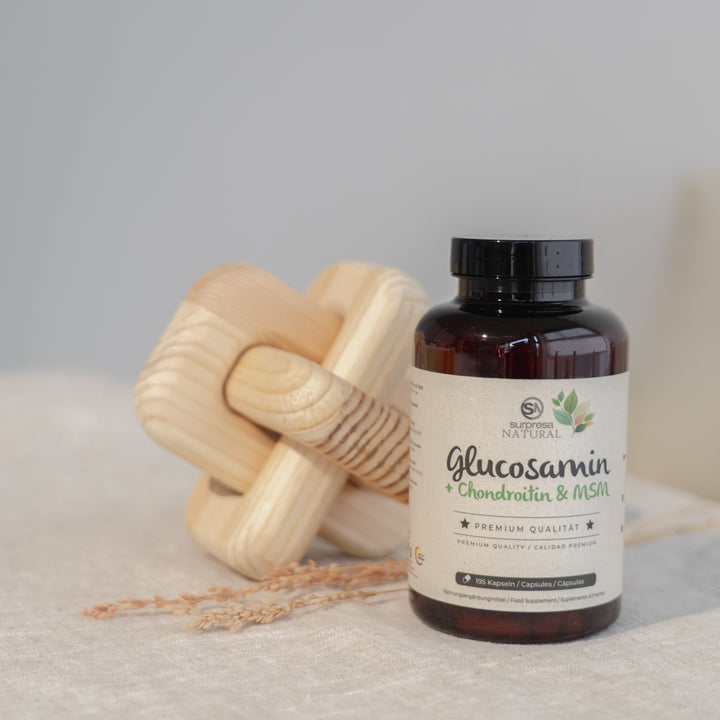 Hinweis: Achten Sie bei Online-Käufen stets darauf, welche Art Glucosamin die jeweiligen Kapseln enthalten. Es gibt nämlich zwei verschiedene, handelsübliche Rohstoffe: Glucosamin HCL und Glucosaminsulfat. Fast alle Studien zur Effektivität von Glucosamin wurden mit dem Sulfat durchgeführt. Für die Wirksamkeit des günstigeren HCL gibt es hingegen kaum Belege. Achten Sie daher darauf, dass Ihr Produkt nur Glucosaminsulfat enthält. Kapseln von Surpresa Natural enthalten das hochwertige Glucosaminsulfat.