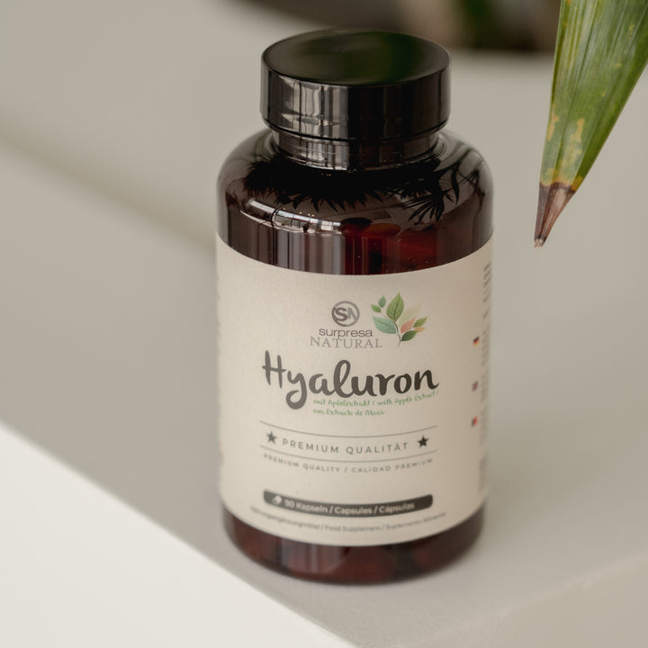 Ob Creme, Serum oder Ampulle: Kaum ein Beauty-Produkt kommt heutzutage noch ohne Hyaluron aus. Kein Wunder, denn das Zaubermittel ist bekannt dafür, die Wasserspeicher der Haut aufzufüllen und diese auf natürliche Weise aufzupolstern. Doch warum nur von außen anwenden, wenn Schönheit doch bekanntlich von innen kommt? Unterstützen Sie Ihre Haut durch die Einnahme von Hyaluron. Unsere Kapseln aus Hyaluronsäure und Apfelextrakt helfen Haut und Haar dabei, täglich aufs Neue zu strahlen.