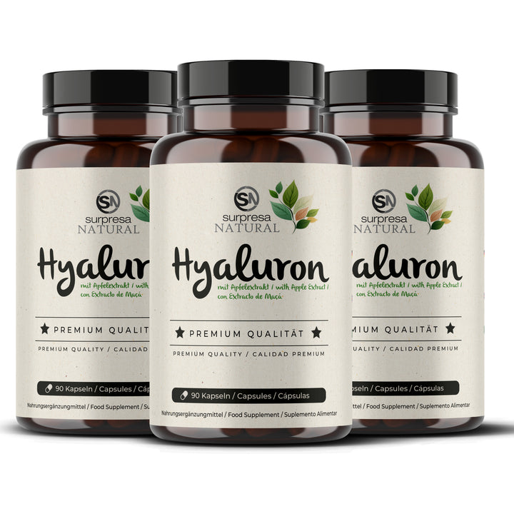 Der beigefügte Apfelextrakt macht unsere Hyaluron-Kapseln zu etwas ganz Besonderem. In der Kosmetikindustrie ist Apfelextrakt bereits seit einiger Zeit für seinen unvergleichlichen Anti-Aging-Effekt bekannt. Dieser steckt nun auch in unseren Kapseln mit Hyaluronsäure und Apfelextrakt.