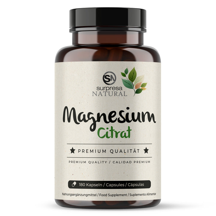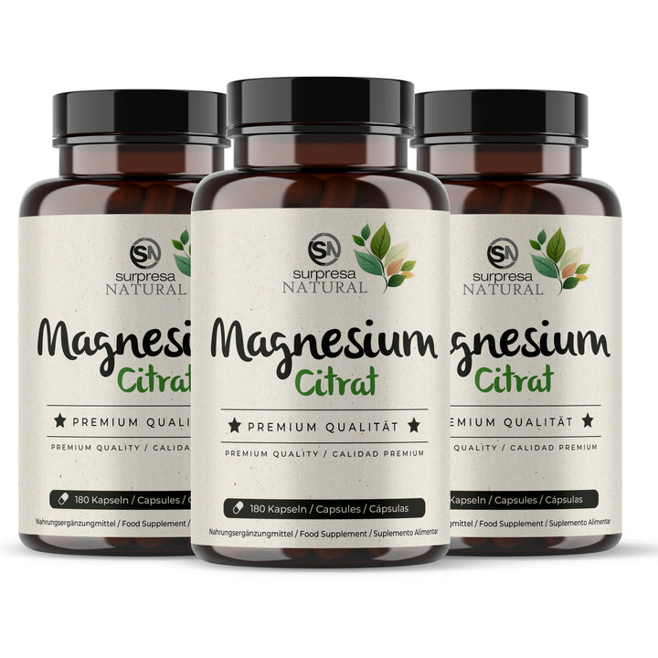 Die Magnesium Citrat Kapseln von Surpresa Natural enthalten Tri Magnesium Di Citrat als Rohstoff. Dieser zeichnet sich durch einen doppelt so hohen Gehalt an elementarem Magnesium im Vergleich zu herkömmlichen Produkten aus.